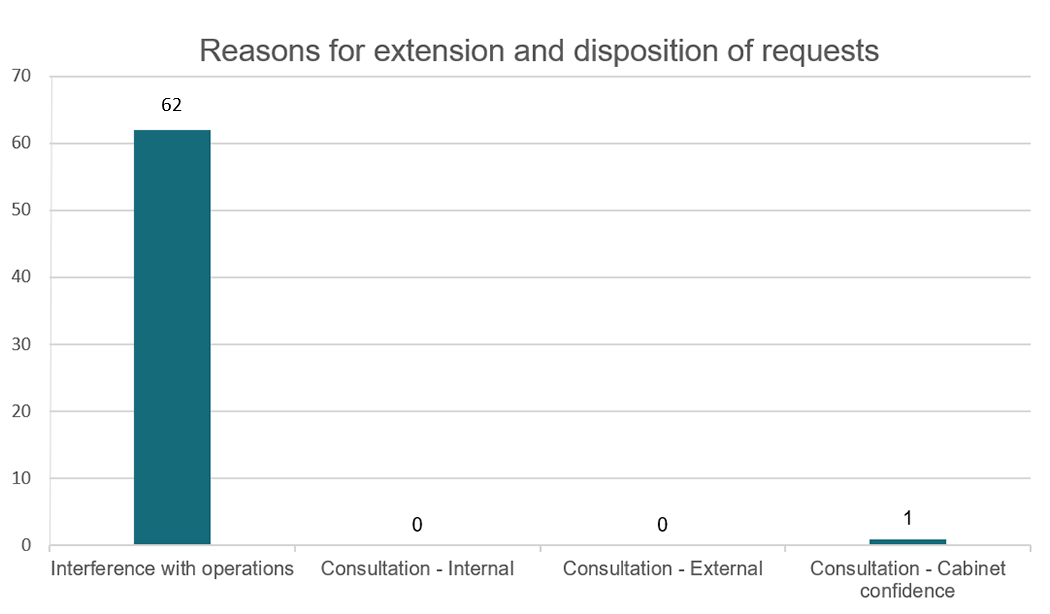 During 2024-2025, 62 extensions were taken based on interference with operations and 1 extension was taken due to cabinet confidences.