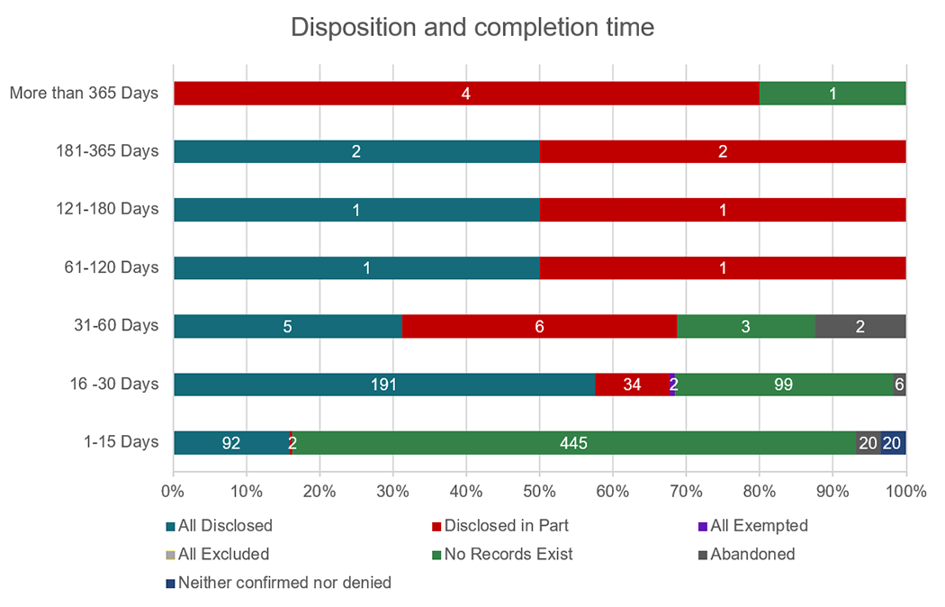 | All disclosed | Disclosed in part | All exempted | All excluded | No records exist | Abandoned | Neither confirmed nor denied |
