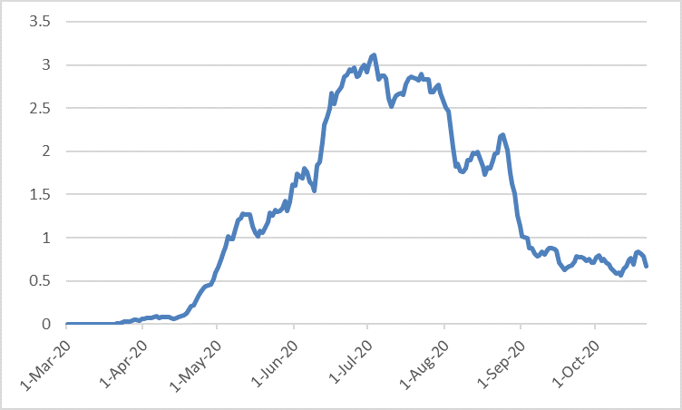 Daily New Confirmed COVID-19 Cases per Million People ». [Date de consultation : 21 oct. 2020]