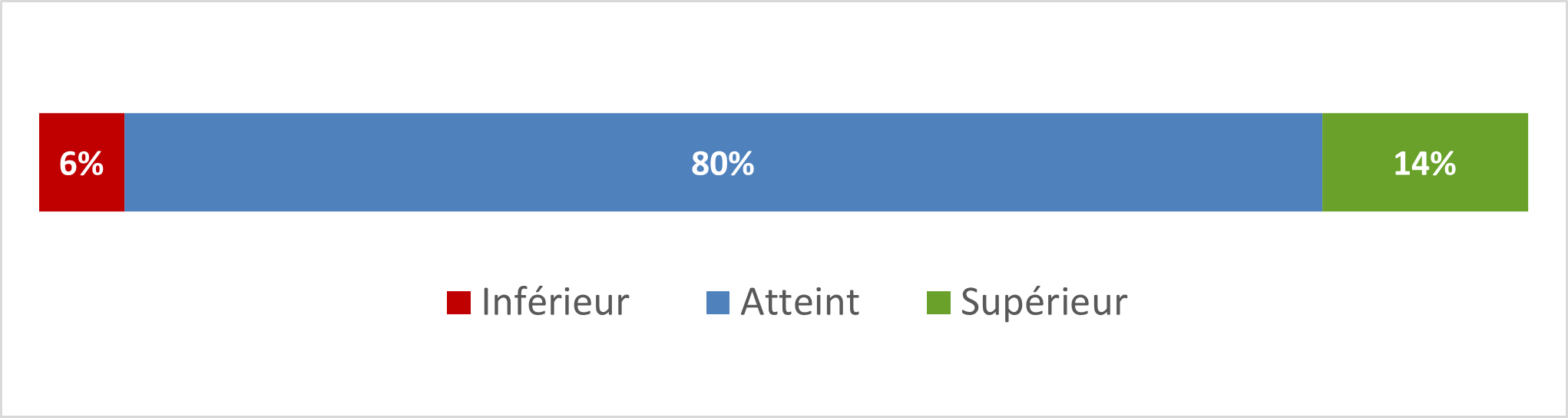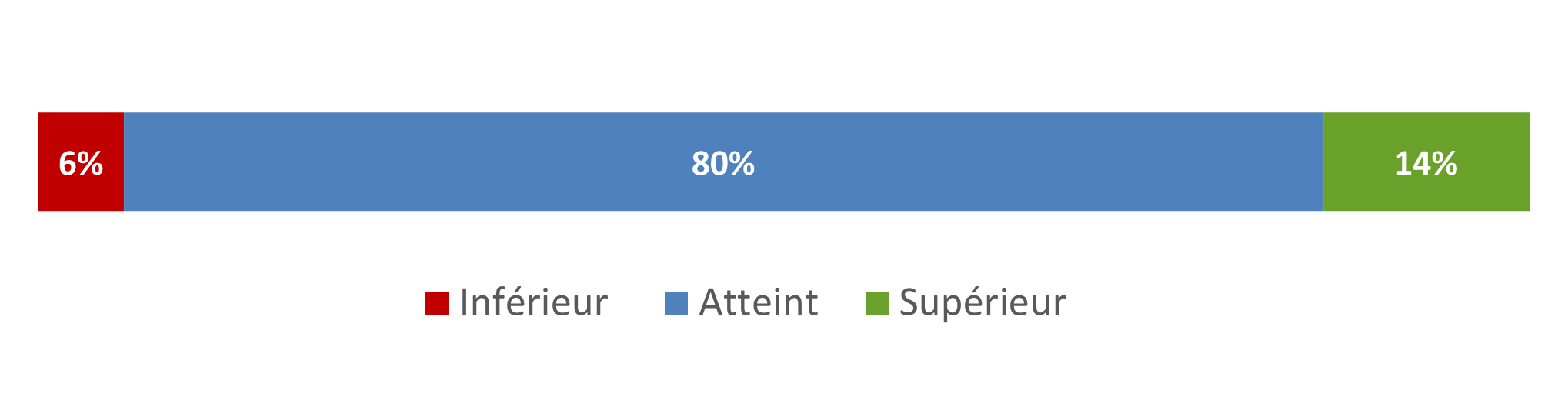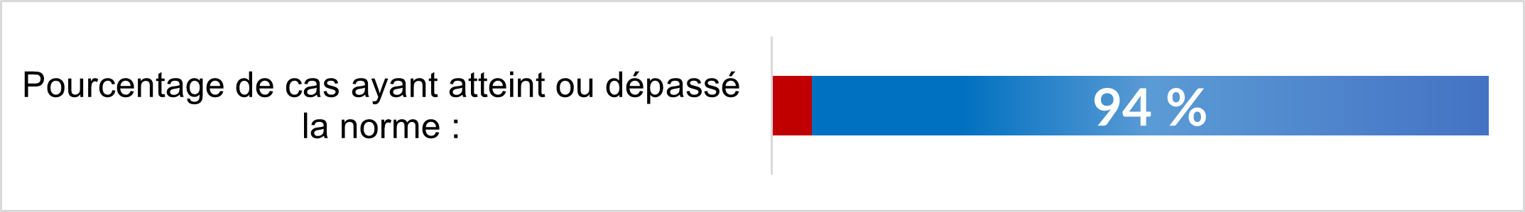 | Pourcentage de cas ayant atteint ou dépassé la norme : | 6% inférieur | 94% atteint ou dépassé |