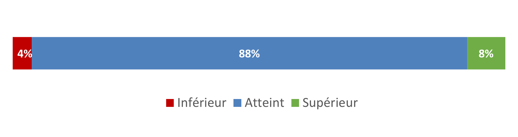 | 4% inférieur | 88% atteint | 8% supérieur |